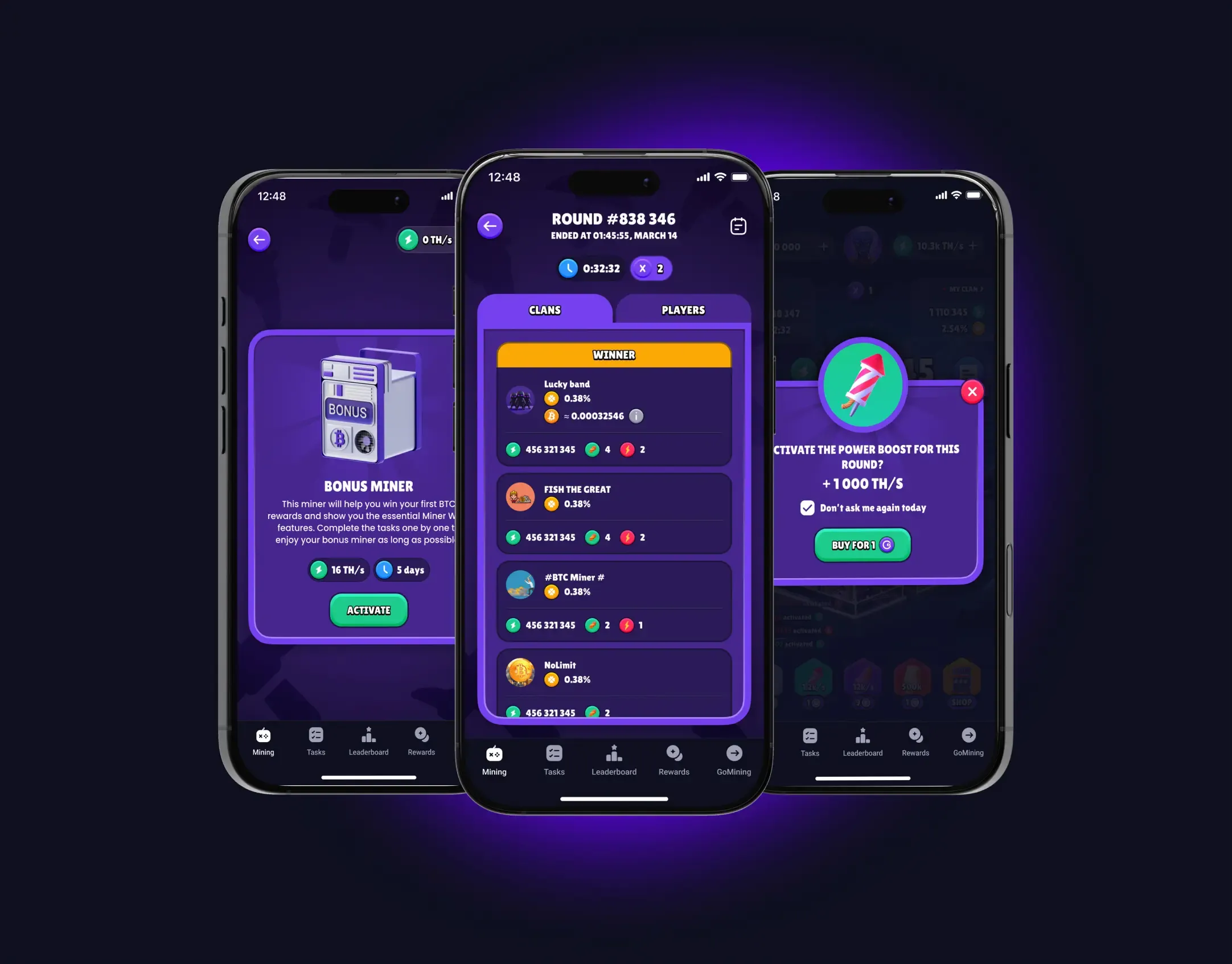 We believe that gamers should be able to earn real BTC and GoMining rewards. This is where the winners gets the most profit.